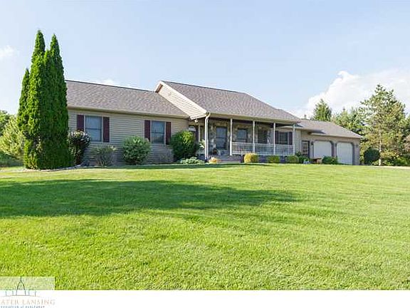 8.9acres Paved Drive 700ft. 2155sqft large floorplan has 3 bed,2.5 bth,1st floor laundry. Master Suite has a walk out to th e650 sq.ft deck. Finished basement, total living space of 4074 sqft. 30x60,23x32 Barns