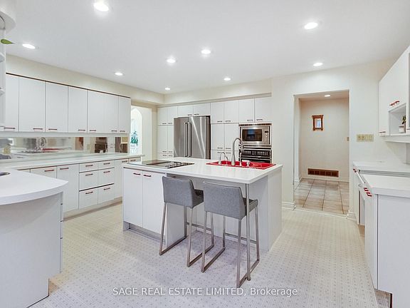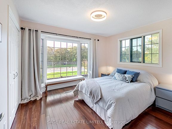 Welcome to 4143 Tapestry Trail, a unique, custom-built corner-lot home where the 416 meets the 905, combining bright natural light with over 5,000 square feet of comfortable living space. This amazing home features soaring ceilings, expansive windows, and a sunny skylight-lit chef's kitchen anchored by a large centre island with ample counter space and plenty of cabinetry. With six spacious bedrooms and seven bathrooms, the home is ideal for growing or multi-generational families. The primary bedroom boasts a huge private balcony overlooking the park, a walk-through closet, and a spa-inspired 5-piece ensuite with a soaker tub. Enjoy an additional private balcony off one of the bedrooms, overlooking the side yard. A sun-filled solarium opens onto a large back deck and a wraparound yard ideal for gardeners, kids at play, and outdoor entertaining. The expansive basement offers flexibility, with a large bedroom, a full kitchen, two bathrooms, a fireplace, and a separate entrance, making it perfect for multigenerational living or an income suite. The massive attached double-car garage features vaulted ceilings and abundant storage, ideal for sports gear and active lifestyles. The garage opens onto a wide driveway, providing combined parking for up to six vehicles. With direct access to Garnetwood Park, this home blends privacy, ease, and space to call your own. Just moments from tennis, golf, and scenic walking trails, and with close highway access, the city, airport, and beyond are within easy reach. A grand home with endless potential and possibilities.