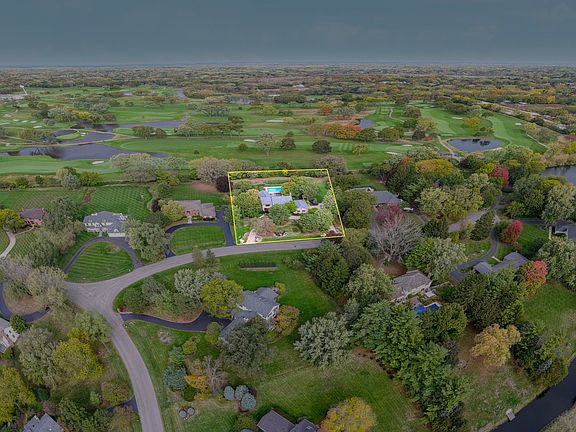 Welcome to Your Dream Home! Nestled in the prestigious Lakes of Long Grove Subdivision, this stunning 5-bedroom, 4.5-bathroom residence is perfectly situated on a sprawling 1.06-acre lot with breathtaking golf-course views. As you arrive, you'll be impressed by the charming, expansive front porch and the heated 3-car garage featuring a premium epoxy-coated floor and direct access to the mudroom and pantry area. Step inside to a light-filled, open floor plan beginning with a grand foyer and a striking winding staircase. At the heart of the home lies the gourmet kitchen, showcasing premium-class cabinetry with abundant storage, elegant finishes, and an oversized island with seating for five-perfect for both everyday living and entertaining. The kitchen cabinetry and surfaces remain in like-new condition, reflecting exceptional care and craftsmanship. The kitchen opens to a new, expansive premium composite deck, built with maintenance-free deck boards that require no restraining or refinishing, offering long-lasting beauty and durability. Step outside to your private retreat featuring a sunken hot tub and a heated 20'40' pool, one of the largest home pool sizes in its class, refinished in 2023 (depth 2.5'-5.5') with 2022 mechanicals, auto cover, and a pool-side open-air gazebo. Enjoy evenings by the gas firepit in the fully fenced yard, enhanced by a newer aluminum fence and a professional landscape lighting system that beautifully illuminates the entire property. The garden and pathway lights create a stunning nighttime ambiance, perfectly highlighting the home's architecture and lush greenery. Surrounding the home is gorgeous, professionally maintained landscaping, lovingly cared for and enhanced for over 30 years. Every season brings a new layer of beauty-from vibrant blooms to mature trees and manicured lawns-creating exceptional curb appeal. Inside, you'll find three elegant fireplaces-a cozy centerpiece in the family room, a formal accent in the living room, and a private retreat in the primary suite-each adding warmth and charm throughout the home. A secondary family room connects to the formal dining room and living room, ideal for hosting. The main-floor bedroom/office with a full bath offers flexibility for guests or as a first-floor suite. A half bath and a large pantry/mudroom are conveniently located off the garage. Upstairs, discover four additional bedrooms, including two luxurious primary suites, one of which overlooks the serene pool and Twin Orchard Country Club golf course, creating a truly picturesque retreat. The exterior includes a circular driveway and extensive professional landscaping. The partially finished basement provides ample room for recreation, fitness, or future customization. Recent updates include a DaVinci composite roof (2023), whole-house generator, three separate A/C systems for zoned comfort, and a premium whole-house water-filtration system. The entire home, including all doors, windows, and basement entries, is prewired with an ADT security system that can be activated for 24/7 professional monitoring if desired. 2025 upgrades feature new LED ceiling lighting throughout, a dedicated 60 AMP electrical line from the main panel to the garage (ideal for EV charging or future expansion), CAT6 (RG45) network cabling routed to multiple rooms from a centralized hub, and a new concrete foundation (1113.5) for an outdoor shed. Located just two blocks from historic downtown Long Grove, you'll enjoy easy access to festivals, shops, and restaurants. The property is within the highly acclaimed Kildeer Countryside District 96 and Stevenson High School District 125, among the best in Illinois. This home truly has it all-too many features to list! See the features sheet for full details. Experience the beauty and elegance in person-this property is must-see!!