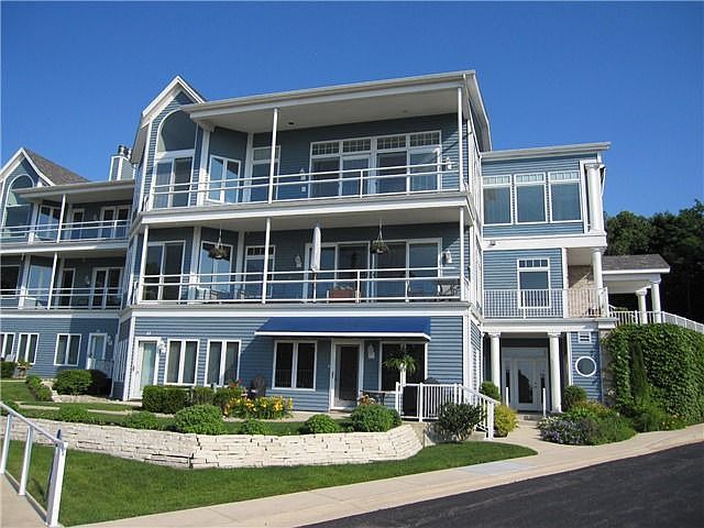 Gorgeous views of Lake Michigan from this signature Sable Shores Condominium penthouse. This open floor plan features vaulted ceilings, accent beams and numerous columns on granite bases. Private elevator to all 3 levels. 2 separate entries. UPPER LEVEL: 4 bedrooms; 2 full & 2 half baths; oversized widnows with interior blinds; covered balcony, heated tile floors in 3 rooms; granite kitchen tops; custom solid maple and cherry cabinets. Built-in stereo system pipes music throughout LR, Kitchen and MBR. Phone and data wiring in all rooms. Beautiful ENTRY-LEVEL entrance; custom stairway with maple treads, curved handrail & nickel accent baluster & newel posts. WALK-OUT LEVEL: poolside lounge leads to covered patio with enclosed grille island & high out-put exhaust system. Wine cellar with concrete slab roof. Structural steel & concrete construction between floors. Rigid & sound dampened shell construction. Natural gas powered back-up generator produces 15kw/122-40. -------------------- Brokered And Advertised By: James Agens, RE Broker Listing Agent: James M. Agens