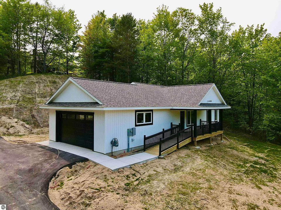 Modern New Construction in the Heart of Leelanau County. Nestled in the scenic hills of Cedar this new construction home offers a perfect blend of rustic elegance and contemporary comfort. Boasting 3 bedrooms and 2 bathrooms, the thoughtfully designed layout features an open-concept great room with soaring wood-clad ceilings, hardwood floors, and a cozy stone fireplace as the centerpiece. The gourmet kitchen is outfitted with custom cabinetry, granite countertops, a spacious island, and modern pendant lighting  ideal for entertaining or daily living. The home also features a tankless hot water heater. Enjoy peaceful mornings or relaxing evenings on the back porch that looks out over a wooded landscape. The lower level adds a family room and two bedrooms. The two-car garage provides ample storage for toys and your cars. Set on nearly half an acre, this home sits just minutes from Good Harbor Beach, the Sleeping Bear Dunes, and all the charm of Leelanau County’s golf courses, wineries, trails, and lakes. A true Northern Michigan retreat ready to enjoy year-round or seasonally.
