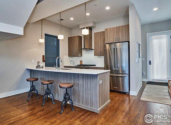 Right outside your door you can be a part of a long time Tennyson Street tradition, First Fridays! Come out to see the latest art exhibits in the galleries & local businesses. Meet the artists, shop for great, local art. Dine at the great eateries offering special 1st Friday discounts & listen to great musical artists up and down the street right from your roof top patio with unobstructed Tennyson Street and Mountain Views! Modern, sleek, quiet, street facing end unit with premium finishes & ultimate in convenience this one has it all! Impeccably cared for! Across the street from Cesar E Chavez park you can easily enjoy plenty of time outside! The main level features a wide, open concept, well-laid out floor plan with newly refinished high quality hardwood floors, high ceilings & neutral colors. The sleek chefs kitchen boasts stainless steel Kitchen-aid appliances, island with quartz countertops, undermount sink, ample cabinetry, subway tile backsplash & more! The kitchen flows into the living room & dining room, ideal for entertaining. Natural light floods the living and dining room from the big picture windows. The living room also includes an eye-catching wood accent wall. Dont forget about those VIEWS! The second level has two bedrooms, each complete with their own ensuite bathrooms & walk-in closets. To-die-for views from the master suite! The master bath has a wood accent wall, double vanity & a linen closet. The 3rd floor, private, rooftop deck is spectacular! The deck is large enough for a firepit, grill, loads of patio furniture for premium entertaining! This unit comes with TWO reserved spots in the secure, heated garage, making parking on Tennyson Street stress free! Its the only unit in the building with 2 spots! You also get 2 secure storage units for all your ski/snowboard/fishing/hiking/camping equipment, plus there are several bike racks throughout the complex. Don't miss seeing this better than new property. This is prime North Denver living!