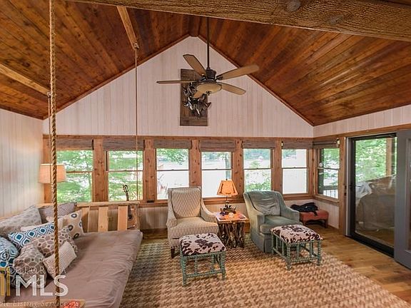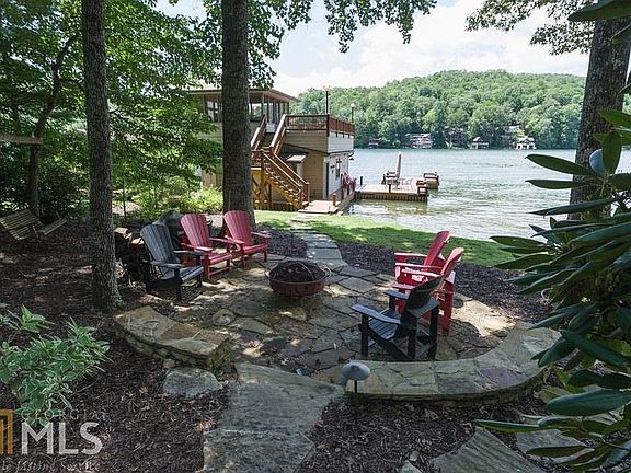 FEE SIMPLE. Enjoy single level living in this renovated 4BD, 3ba home on a coveted level lot with mountain & sunset views. A covered lakeside porch offers space for dining & lounging, overlooking a fire pit & 2-story boathouse with swim dock. A detached garage features a bunk room, 2nd story game room, full bath and half bath. A 2-car garage is also located on property.
