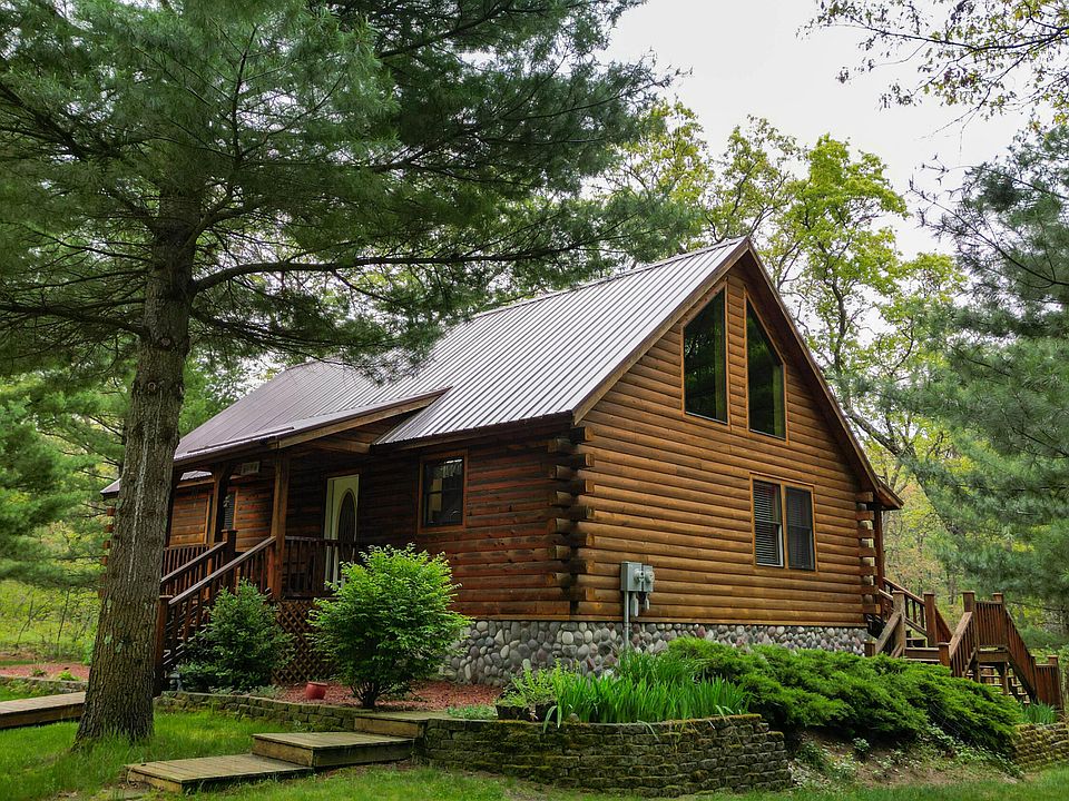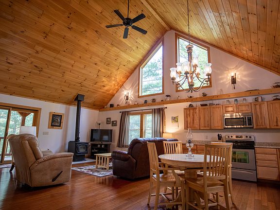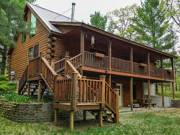 SPORTMANS PARADISE WITH STATE AND FEDERAL LAND LESS THAN 1/4 mile away. Tin Cup Spring ORV Trail located just 3 miles away. Beautiful 3-bed, 3-bath log-style retreat nestled on 5 serene acres. Built in 2010, this gorgeous home boasts a spacious master suite with full bath on the main level. A second suite with full bath can be found in the finished walk out basement. Well-manicured yard and landscaping has inground sprinkling. Embrace the tranquility of nature from the comfort of the expansive deck, or tinker away in the 2 1/2 stall garage. With Starlink available for high-speed internet, you can enjoy both seclusion and connectivity in this idyllic haven.