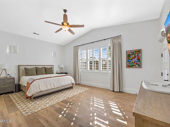 Nestled in the heart of Arcadia Lite and zoned for Hopi Elementary, this stunning home captures the quintessential Arcadia lifestyle. Enjoy very close proximity to Kachina Park, LGO, Ingo's, and other Arcadia favorites. The inviting front courtyard with its fireplace, and picturesque Camelback Mountain views sets the tone for effortless indoor-outdoor living. Inside, hardwood floors and vaulted ceilings enhance the open-concept design. The upgraded kitchen features newly updated appliances, RO system, and a large island. Natural light fills the living space with an expansive wall to wall accordion glass door flowing into the backyard. The primary suite boasts custom drapes, a soaking tub, and a luxurious rain shower. More highlights include a Tesla EV charger and side-entry off 42nd St. with access to 42nd Street.