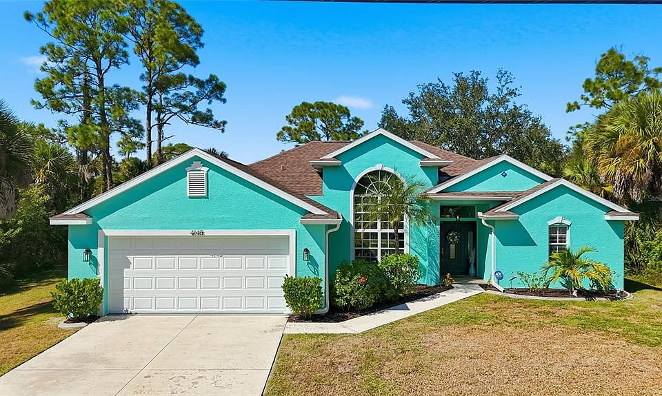Welcome to 4145 Lagoon Terrace in beautiful North Port, Florida! This inviting 3-bedroom, 2-bath home built in 2003 offers the perfect blend of comfort, space, and tranquility. Nestled on a peaceful 0.23-acre canal lot surrounded by woods, this property provides a quiet retreat while remaining close to shopping, dining, and top-rated schools. Step inside and enjoy 1,655 square feet of well-designed living space featuring tile flooring throughout and a bright split floor plan. The spacious living room boasts a tray ceiling and a seamless flow to the formal dining area—perfect for family gatherings or entertaining guests. The eat-in kitchen includes a cozy dinette area with a large window overlooking the sparkling pool and serene canal views. The primary suite is a true owner’s retreat, showcasing a tray ceiling, private slider access to the pool area, and a luxurious master bath complete with dual sinks, a garden tub, walk-in shower, and a spacious walk-in closet. The second bath features an updated vanity and a shower-tub combo for added convenience. Enjoy the best of Florida living outdoors with a southeast-facing pool that captures plenty of sunshine throughout the day. Additional highlights include a newer roof (2022) and a brand-new A/C system installed in 2025, providing peace of mind and efficiency. This home offers the perfect combination of privacy, comfort, and modern updates—all without HOA or CDD fees. Whether you’re looking for a permanent residence or a relaxing Florida getaway, 4145 Lagoon Terrace is ready to welcome you home.