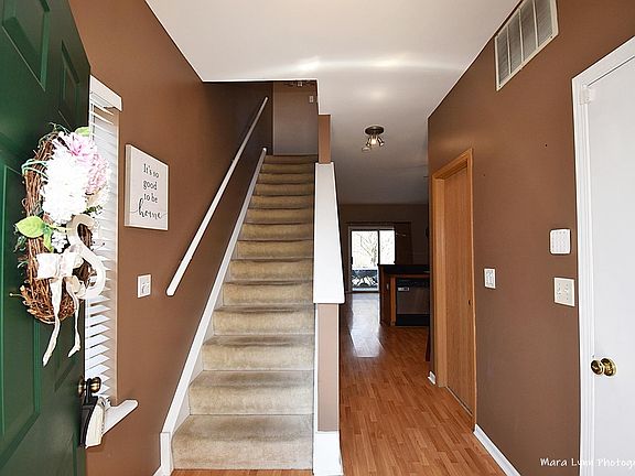 What's not to love here in this unique end unit townhome backing up to wooded area! You'll love the built in bar with custom shelving and wine fridge in the living room with surround sound. Enjoy the loft (rare feature) with custom decorative shelving and bookcase! Make it your office or your own peaceful place to enjoy your favorite things! You will love the huge master bedroom with large closets that have organizers! There is even a 2nd floor laundry! The kitchen offers a breakfast bar and eat in area with newer oven and sink/faucet. Large walk-in pantry too! Other new items include: Air Condition-2019, Roof-2019, Asphalt driveway-2021, Ceiling fans in all rooms-2018, Garage door opener-2000. Enjoy the scenic views of the wildlife on your large patio with planter's bench! The following items do not stay, home security system, shelving in pantry & utility rms, mirrored jewelry cabinet in mstr br, removable fireplace in lv rm. So much to enjoy here! Come and make it your own! Plenty of shopping nearby, Dog Park and Van Horn Woods.