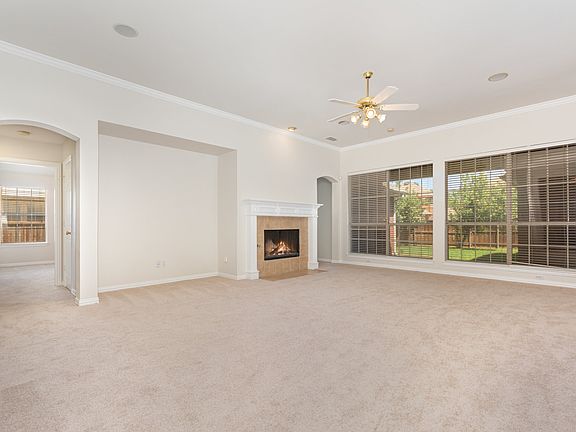 Lovely 4-2-2 with study,one story with great open floor plan and around the corner from the highly sought after Stinson Elementary School. Enter with formal dining or second living area on the right and study with private doors on the left. Spacious Kitchen overlooks family room. Stainless Steel appliances, 4 burner gas stove, large island with seating for four and pantry. Family room is large and open with good natural light and fireplace. Split bedrooms with primary suite tucked away in the rear for privacy. Primary suite has spa like bath with tub and separate shower and large walk in closet. Secondary bedrooms off a separate hallway with hall bath and walk in closets. Covered patio, fruit trees (apple) in the back, Recent updates include full home interior paint and new carpet July 2025, white cabinets in kitchen 2024. House is on a dead end cul-de-sac street so very light traffic area. Near schools, shopping, George Bush Frwy and restaraunt row off Renner road.