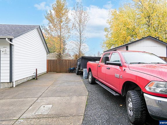Beautiful home in Northeast Salem featuring an open floor plan with vaulted ceilings and laminate floors. The kitchen offers granite countertops, an island, and stainless steel appliances. The primary bedroom includes two custom walk-in closets and a private bath with granite counters. Enjoy the covered front porch, fenced backyard with patio, and RV pad. A/C. Conveniently located near schools, dining and shopping.