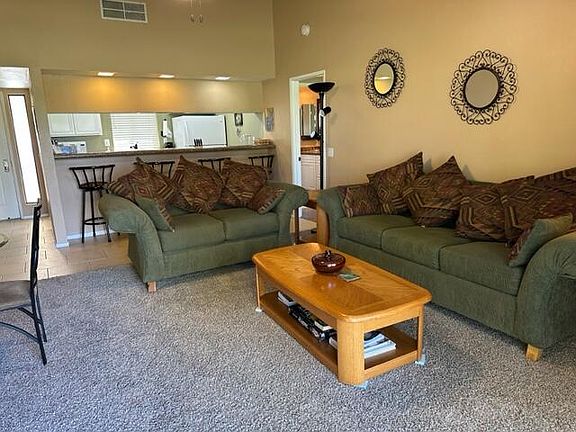 Great updated and well maintained 2 bedroom and 2 bath unit. Bedrooms are separated by the living area. Indoor side by side laundry. Tile in main rooms and carpet in the bedrooms. Kitchen with granite counter tops. An oversized northeast facing patio overlooking the 1st fairway. It's perfect for entertaining. Available for seasonal rental. Located in the Palm Desert Resort Country Club, with 18 holes of golf, 500+ member pickleball group, tennis courts, 2 Bocce ball courts. Remodeled clubhouse. Unit is rented: Jan, Feb, and Mar of 2025. It is available all other months.