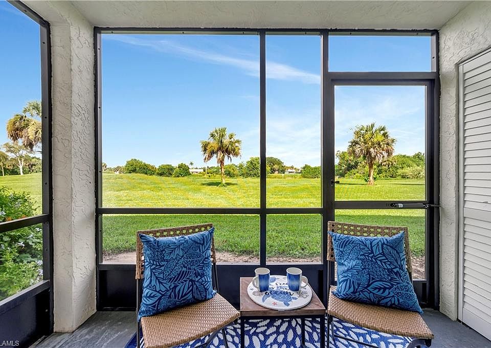 Discover this hidden gem, first floor unit tucked away on a private road and surrounded by a public golf course. Remodeled unit with new Hurricane Windows and sliders. It’s a peaceful and quiet retreat, yet full of fun and friendly people. Save Your Knees - This is the only first-floor unit available in the entire complex at the time of listing. Affordable Fees - One of the lowest condo fees in Naples. Easy Care - Save Money. Enjoy a Cool Drink and Relax - Take in the view of the pond from your private screened lanai. Invite Your Friends - With a second bedroom and bath this is the perfect place for seasonal or year-round living. Rental income is no problem in this highly desired development. Only 9 miles to downtown and the beaches, minutes from I-75 exit 105, and just 30 minutes to the airport.