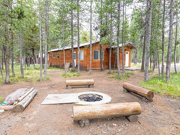 Fire pitCircular drivewayTowering lodgepole pine treesWooded corner lotHardwood floorsUpdated with granite countertops