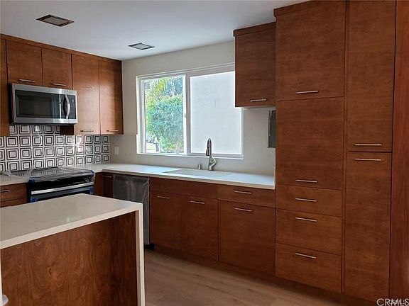 Beautifully upgraded mid-century duplex on a quiet cul de sac of Los Cerritos. Brand new flooring throughout with modern upgraded kitchen and baths plus a large unique circular staircase and floor to ceiling windows. This unit has spectacular natural light.. All appliances are newer (2 years old) including the washer and dryer. There is interior access to the spacious two car garage. Brand new "0" scape landscaping accents the entry. Landlord provides gardener services and, as a bonus, there is a large private and fenced backyard! This stunning duplex offers a unique opportunity to enjoy the classic mid-century styling modernized to today's standards and is a "Must See"! Tucked in a quiet cul de sac of Los Cerritos, it offers serene and quiet surroundings while close to all major transportation access.