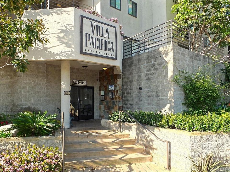 Light, bright and spacious 1 bedroom with tree top views! The unit is located on the second floor and there is an elevator in the building. New carpet and new flooring in the kitchen, entry and front bathroom. Smooth ceilings and fresh paint throughout. Tree top views from the family room, living / dining room, kitchen and master bedroom. The half bathroom is very convenient for guests. Inside laundry with stackable washer and dryer is an extra bonus! Family room with closet may be converted to a second bedroom. Villa Pacifica features pool, spa, BBQ and lush landscaping. Conveniently located near shops & restaurants. Move in ready!