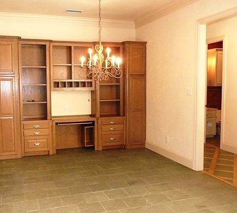 Small gated community. One level custom home is a book lover s delight! Quality finish out: a wall of bookshelves in den w library ladder, open kitchen with gas cooktop, den, breakfast area with quality built-ins. Hardwood floors in formal living and dining and front bedroom. Slate floors in open den w ceiling to floor windows to landscaped patio w fan.