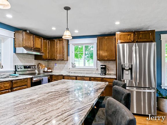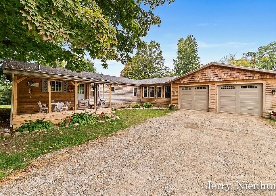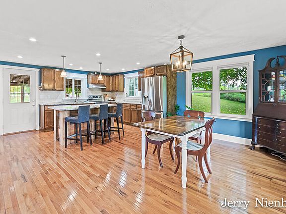 Hamilton area...Wonderful setting on 2.7 acres in an area of fine homes. This home is a total renovation in the last few years. Offers over 1900 sq. feet of living area on the main floor & it is light & bright with loads of windows! Spacious open Kitchen/Dining/Living Room with beautiful oak floors. Kitchen features huge island with Natural Quartzite tops & all new LG appliances. Three roomy bedrooms, the primary bedroom features a tub, shower & walk in closet. Lower level is roughed in for future bath, 4th bedroom & family room space and lined with windows and walk out. Large garage is fully insulated and has hookup for whole house generator. Huge deck area overlooks the back yard and front porch has roof and screens could be added! Enjoy your new place in the country!