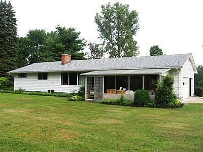 Nice, well built ranch with 3 bedrooms& 2 bath on almost 5 acres of wooded property. Enclosed sun porch& full basement. Easy freeway access.