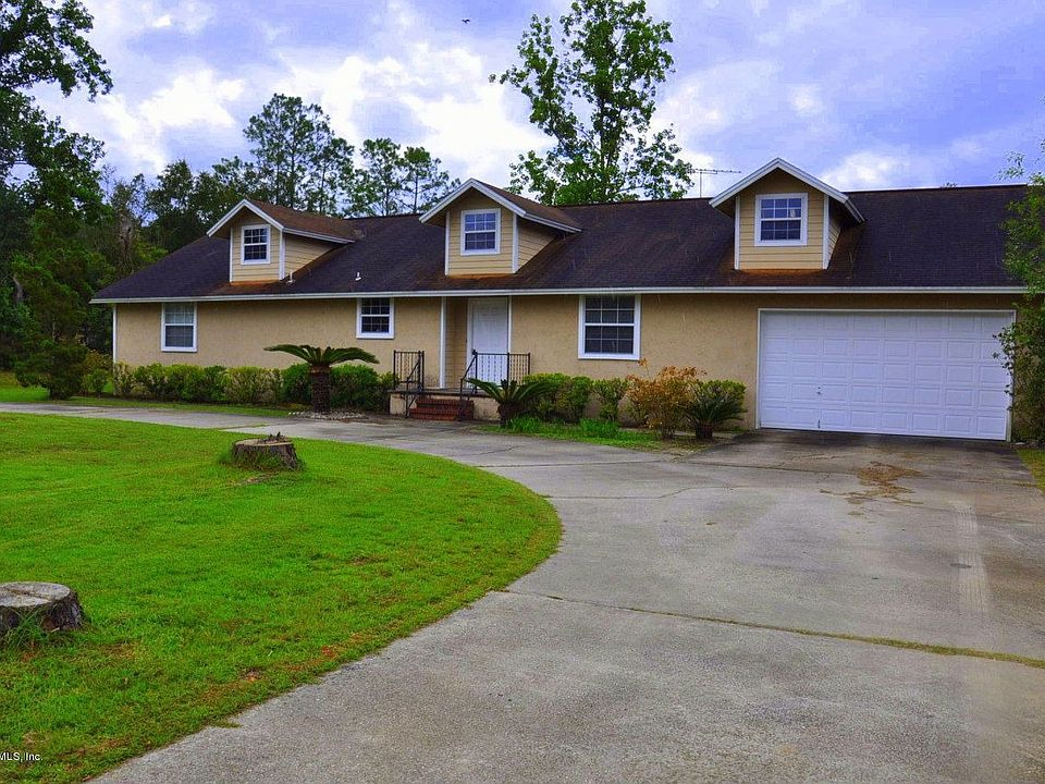 Country charm through out this 4/3 home. House has an updated kitchen, 2 masters, one could be used as a mother-in-law suite. This property also has a huge detached garage 40x50 (approx 2000 sq ft Quonset Hut - Prefab Steel Building), back deck on home and patio, small detached office in back, attached 2 car garage with additional storage. Room in attic in add living space if you wanted to add on. All of this on 2.5 acres. Bring the horses and the toys.