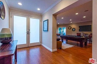 Striking, gated celebrity retreat in the hills of Sherman Oaks with access to the West side at your fingertips. Almost 4000 feet of living space featuring gleaming hardwood floors, recessed lighting, crown moldings and quality finishes. Fully equipped chef's kitchen with large center island and breakfast bar features dark granite counter tops, modern cabinetry, steel appliances. Kitchen opens perfectly to the family room with fireplace, separate dining room and peek-a-boo views of the Valley below. Outstanding master retreat w fireplace, adjacent room perfect for gym, nursery or office. Luxurious hotel-like bath, equipped with sauna, heated pillow top marble floors, custom accent tiles and claw foot soaking tub. Spectacular TV/game room complete with wet bar, outdoor sitting area and private bath. Low maintenance backyard offers total privacy framed with mature trees and high quality artificial turf. Custom wine closet, surround sound, energy efficient A/C and so much more!