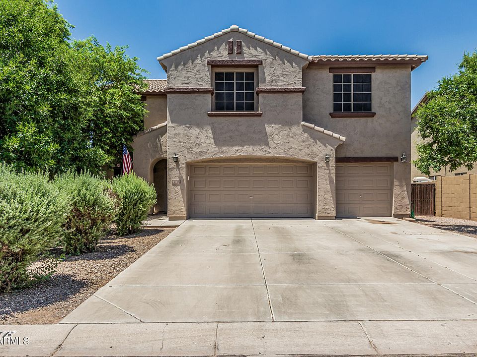 This exceptional 4-bedroom, 3.5-bath home with a versatile den offers over 3,700 square feet of luxurious living space—truly the one you've been waiting for. From the moment you arrive, the beautifully designed desert landscaping and spacious 3-car garage create a striking first impression. Step inside to discover a thoughtfully designed floor plan featuring formal living and dining areas, an expansive family room, large loft, and a private office/den—perfect for both relaxing and entertaining. The chef's kitchen is a true standout, showcasing rich cabinetry, granite countertops, stainless steel appliances, a walk-in pantry, and a charming center island ideal for gatherings. Retreat to the grand primary suite, where you'll enjoy a spa-like bath with dual vanities, a soaking tub, separate glass-enclosed shower, and a generous walk-in closet.