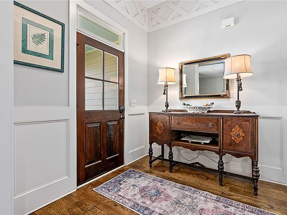 LARGE FLAT backyard w/wooded background is one of the fantastic features of this charming home. Inside you'll find classic sanded wood floors throughout all living areas on the first floor including the oversized primary bedroom. The charming foyer is welcoming with detailed accent millwork. A graciously sized dining area will accommodate your dining furniture & flows easily into the large family room w/vented FP. Space is key in the oversized kitchen w/abundant natural light, wall oven and a custom pantry. A large wrap around covered front porch is a unique feature w/ a swing perfect for those summer night chill-out sessions. Entertain everyone in the large private backyard w/recently added classic flagstone patio & covered porch. LARGE,FLAT PRIVATE backyard is great w/endless uses. Upstairs are secondary bedrooms, bonus room & built-in computer/study nook. Close to Chewacla St Park & 1.5 miles from I-85, exit 51.