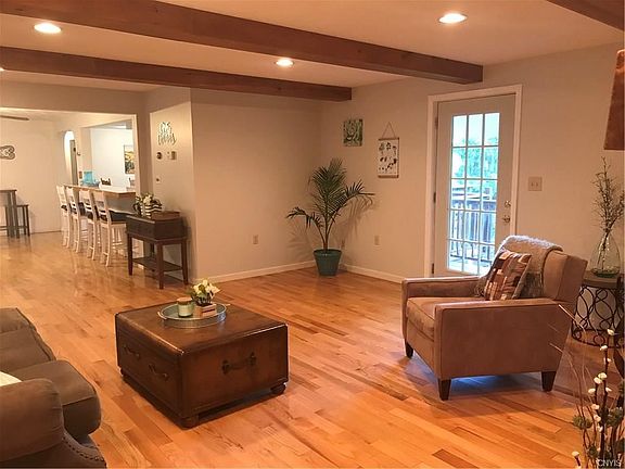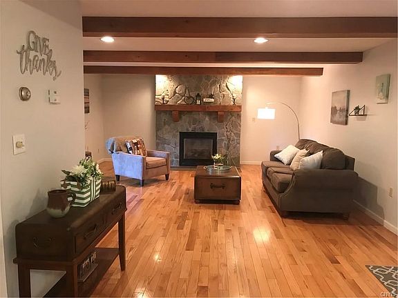 Looking for a little privacy, here it is. You enter into a large foyer/ mud room with large closets & access to the oversized 1 car attached garage. The kitchen /living room/ dining area has a lovely open concept. The dining/ breakfast nook has sliders that lead out onto a wrap around deck over looking a private yard. Beautiful 3/4 bedroom ranch on 2.38 acres. Large family room with cozy gas fireplace. The hallway leads to a large bedroom, full bath & large master en suite. Proceeding downstairs to a finished walkout lower level, you will find another master en suite waiting for you. The other bedroom / office /study awaits your final touches. There's a large barn on the property suitable for a horse/ chickens or additional storage. Also a shed for your garden & lawn tools. 10 minutes to Song Mnt. 5 minutes to Beak & Skiff. 25 minutes to SU, downtown Syracuse.