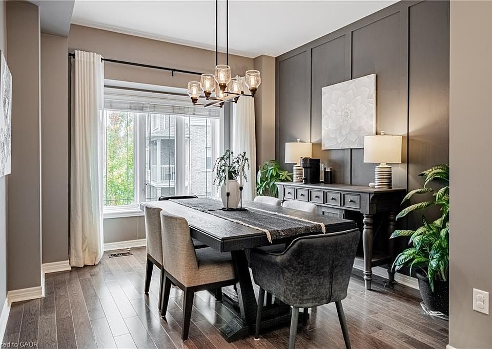 There’s a feeling when a home just fits — the light, the flow, the warmth. Welcome to 4148 Galileo Common, a beautifully upgraded Freehold townhome boasting 1716 sqft of living space in Burlington’s sought-after Longmoor community — where peaceful living meets total convenience. Perfectly nestled between Appleby & Walkers Line, this location checks every box: minutes from the GO Station, QEW, shopping, cafés, parks, trails, golf simulators, gyms and more — everything you want, right where you live. Step inside and instantly feel the calm, modern energy. The main floor is designed for real life — open, bright, and versatile. The kitchen blends style and function with stone counters, stainless-steel appliances, ample cabinetry, and a breakfast bar perfect for morning coffee or casual dining. The living room flows naturally for entertaining or relaxing, featuring hardwood floors, a cozy gas fireplace, and sliding doors that open to nature and your private deck — perfect for BBQ nights, wine with friends, or slow Sunday mornings. Upstairs, you’ll find new wide-plank luxury vinyl flooring, a spacious primary suite with his & hers closets and a private 4-piece ensuite bathroom, plus a second generous bedroom and another 4 piece full bath — ideal for growing family, guests, family, or a home office. The lower level is a hidden gem: bright, open, with a beautiful custom barn door for privacy, convenient sliding door walk-out leading to the private patio backing onto trees — perfect for a guest or 3rd bedroom, home gym, gaming room, office, or media lounge. Notable extras include: smooth ceilings, upgraded lighting, inside garage entry with workbench and storage, and thoughtful touches throughout. Steps to top-rated schools, parks, and nature trails, and only minutes to Downtown Burlington’s vibrant waterfront — a hub for dining, festivals, and lakeside walks.