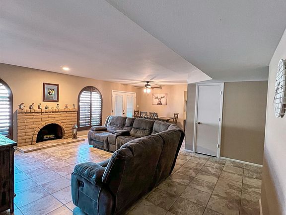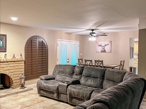 Well maintained 3 bed,1.75 bath, brick home nestled in a quiet, friendly neighborhood. This home has dual RV gates, a fireplace, newer ceiling fans throughout, covered patio w/Kool Deck flooring, wrought iron security gates in the front and back, 2 storage sheds, & French Doors with encased blinds. This home was upgraded inside & out in 2016; custom plantation shutters, laminate flooring in the bedrooms, tile installed in main living areas, extended side roof for added work area or storage, & AC/Heat in garage. New roof & AC in 2011, the pool was refinished December 2020, & the pool filter system replaced October 2022. 2-minute bike ride to Tumbleweed Elementary and Cactus Park, no HOA. Close to freeway, restaurants, & shopping