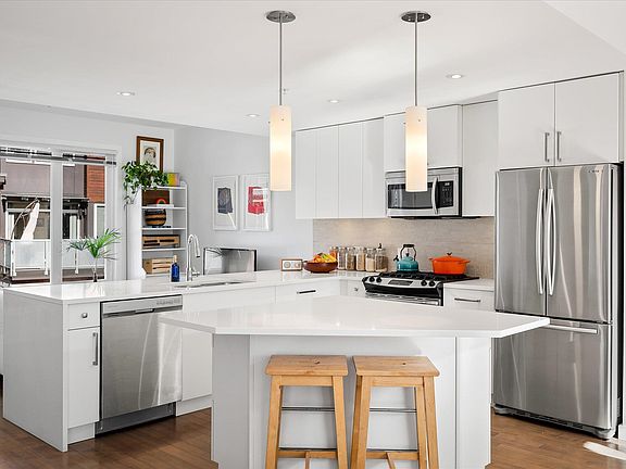 RIVENDALE, rarely available south facing unit backing onto greenspace. This stunning duplex is located in the friendly neighbourhood of Breckendale just steps away from a stunning private river beach. A west coast modern designed unit with 3 bed, 3 bath, offering custom finishes with upgraded package (including a/c and heat pump), oversized windows maximizing the natural light, with incredible views of the trees and mountains. A well designed space with; open concept kitchen with an island and separate breakfast bar, two living rooms, dinning room and nook for an office desk on the main level. Upstairs, the spacious primary bedroom, with walk in closet to ensuite with views from your soaker tub. Extended double garage with two parking spots out front, with tons of storage.