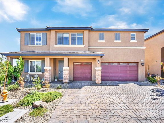 This home is a spacious, beautiful 5-bedroom 3.5 bath which also has a 3-car garage. This home is located in Polaris Pointe; a gated community in North Las Vegas that offers a beautiful park in the community. This stunning home features a very open, spacious floor plan that offers 2 primary suites, one downstairs with an en-suite bath and walk in closet. The kitchen has a large quartz countertop, built in oven and all premium stainless-steel appliances. A separate coffee bar area is across from the walk-in pantry. The loft upstairs offers extra living space, and the primary bedroom upstairs is spacious enough for a seating area. The primary bath has a separate tub and shower with a beautiful quartz back splash along with a massive walk-in closet. The oversized back yard is hard to find in Las Vegas and features a beautiful Heated POOL with a covered patio built in grill, 65in tv and fully finished landscaping. Conveniently located next to grocery, shopping, and restaurants!