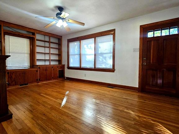 Step inside to beautifully preserved hardwood floors flowing through the living areas and bedrooms. The spacious living room features built-ins and large windows that provide great natural light. The kitchen offers plenty of cabinet storage, a peninsula work surface, and updated flooring. Enjoy the flexibility of an enclosed porch/sunroom—perfect as a bonus space, hobby room, or casual lounge area.