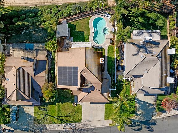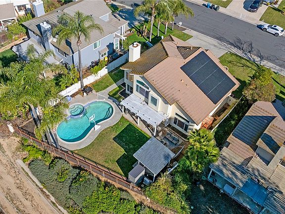 This beautiful four bedroom Temecula home, located on a premium cul-de-sac lot with charming curb appeal has it all! Inside, the vaulted entry welcomes guests into the formal living and dining rooms. The kitchen and family room are open concept and look out to the pool and beautiful views. The kitchen has bar seating, a pantry, luxury vinyl plank flooring, 2023 appliances, and freshly painted cabinets. Also on the main level is a fireplace with brick mantle, full bedroom and bathroom, indoor laundry room with a sink, and a three car garage. Upstairs is a beautiful and private primary suite with bonus seating/vanity/desk area, walk-in closet, spacious bathroom with a dual vanity, soaking tub, and walk-in shower. The secondary bedrooms are generous in size and share a Jack & Jill bathroom. The backyard oasis is an entertainer's delight with a private pool and spa that include a recently added salt water system, new pool pump and heater, expansive VIEWS, no rear neighbors, and a detached studio/office/gym with temperature control and built ins. Stay cool on summer days with the newer whole house fan, AC unit, and solar system. Located in the desirable and well established neighborhood of Ridgeview, a quiet neighborhood with a very low property tax rate and HOA. Ideally located, close proximity to shopping, parks, wine country, top rated Temecula schools, Temeku Golf Course, 15 freeway, and Old Town. Professional video coming soon!