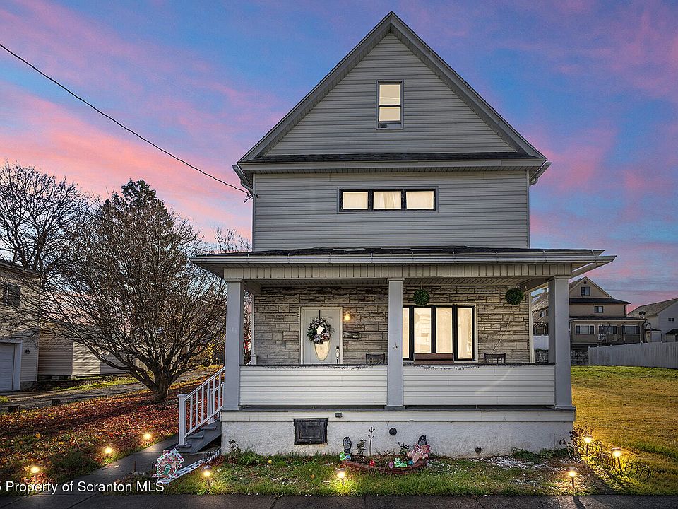 Welcome to this charming 4 bedroom, 2 bath home located in the heart of West Scranton. Perfectly situated just minutes from local schools, shops, and major routes, this property offers the ideal blend of comfort, space, and convenience. Step inside to discover a spacious eat-in kitchen with updated flooring and cabinets, a warm hardwood-floor living area, and two full bathrooms designed for modern living. The home sits on a large, level double lot -- providing plenty of outdoor space for kids, pets, or future expansion.Enjoy your mornings on the covered porch or take advantage of the two-car garage for added storage and convenience. A full concrete basement offers great potential for a recreation area, workshop, or extra storage.The property also features a large attic for additional living space or storage. Formerly used as a two-unit (up and down) duplex, it can easily be converted back for investment income or kept as a spacious single-family home for a growing family. Seller looking to downsize, motivated to sell! Don't miss this opportunity to own a versatile property in one of Scranton's most desirable neighborhoods! Call or text to schedule your private tour today!