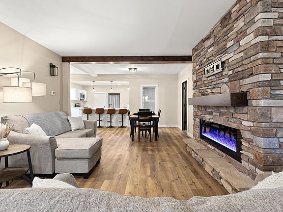 Renovated from top to bottom in 2025, this home offers modern style & convenience with a touch of historic charm! Enjoy early mornings on the front porch or the covered side entry. Improvements include: new electrical, plumbing, furnace, central air, insulation, sheetrock, flooring, interior & exterior paint & the majority of the windows. The spacious kitchen offers all new soft close cabinets & drawers w/new stainless steel GE appliances, coffee bar and pantry! An informal dining connects to the living room, with an attractive 60" fireplace to snuggle up to. 2 bedrooms, laundry room and 3/4 bath complete the main floor. Dual staircase takes you to the upper level which offers a full, hall bath, Bedroom, and main bedroom w/walk in closet and stunning private 3/4 bath. 9' ceilings. New vinyl plank flooring throughout. Attached 2 car garage and detached 12x18 shed all on a oversize, fenced corner lot. Quick possession & closing available. Call for your private showing today!
