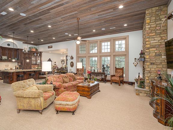 STUNNING acreage just a minute walk from gorgeous views of the lake! 2.42 acres lined w/mature trees &over 50 new evergreens ensures privacy. Zero step entry into this grand home designed w/great detail! Fireplace in bright open living room, huge windows, 13' wood ceiling in most of home. 3 beds on one level w/2 gorgeous master suites! 1st suite 17x18, 11x11 WIC, soaker tub, tile shower. Opposite side is 2nd suite 17x18, 9x11 WIC, tile bath. Half bath next to 3rd bed. EXTRAVAGANT kitchen filled w/pullouts, racks, shelving every inch,beautiful corbels rounding out massive granite island. Built in fridge, freezer, double oven, 2 walk-in pantries! Surround sound, security, 4' hallway, heat floor throughout home. 9x13 laundry w/counter, cabinets, sink. Massive 41x30 heated garage, drain, sink, separate workshop/w full bath. Elevator going up to 41x16 storage loft, down to 330sqft utility. Heated 39x54 shop w/drain, furnace&heat floor, 14' ceiling, 11x13office,1/2 bath. Covered patio.
