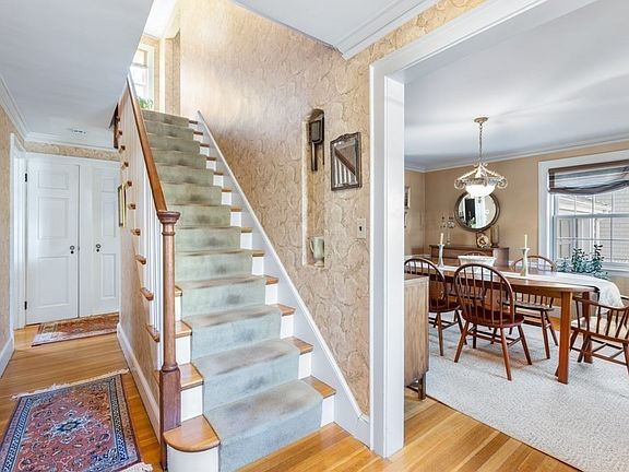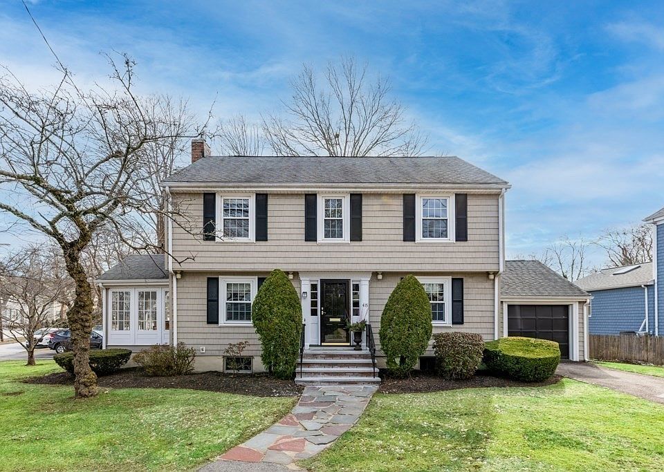 Classic center entrance colonial in great location awaits. First floor hosts a beautiful front to back gas fireplaced living room, updated eat in kitchen, half bath, formal dining room, three season porch and large family room. Second floor has a large primary bedroom and two additional bedrooms with lots of closet space and full bath. Nice level backyard with patio area for your backyard entertaining. Central air on second floor and mini split in family room, very well maintained home and close to East Milton Square with its restaurants, coffee shops, Fruit Center and so much more !! Come visit this weekend at the Open Houses and welcome to Milton !!