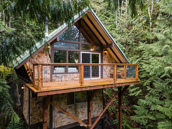 Incredible mountain chalet on almost one acre of land, backing up to over 4,000 acres of trails and forest preserve on Lookout Mountain. This custom two bedroom home features beautiful wood work, vaulted ceilings, metal roof, huge deck, charming character and more. A tranquil creek running through the property along with trails, and garden space make this the perfect private oasis. The property also sits on three large lots, features a large shop with its own electrical panel, tons of parking, a community lake, beach, clubhouse and pool. Sit on your deck overlooking the mountain side listening to the stream, hike the endless trails and enjoy the quiet. Don't miss your opportunity to own this wonderfully unique home and property.