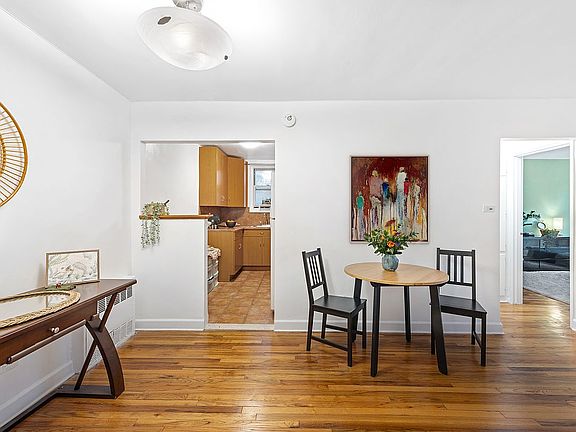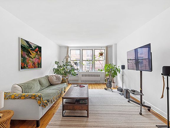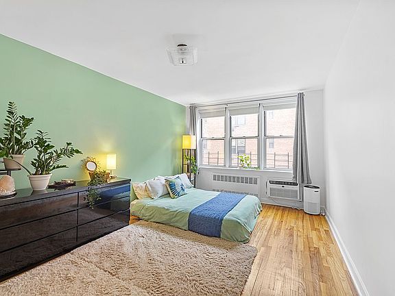 Freshly painted and perched on a high floor, this sunny one-bedroom corner unit shines with abundant natural morning light and serene quietness, perfectly situated at the rear of one of Ditmas Park’s most desirable and well-managed coops. Distinctive features include original hardwood floors, an oversized living/dining room, a spacious king-sized bedroom, and windows in every room—including the kitchen and bathroom. Through-the-wall air conditioners in both the living room and bedroom provide year-round comfort. Ample closet space adds practicality, while the flexible layout easily accommodates your dining set, home office area, or preferred furniture arrangement.