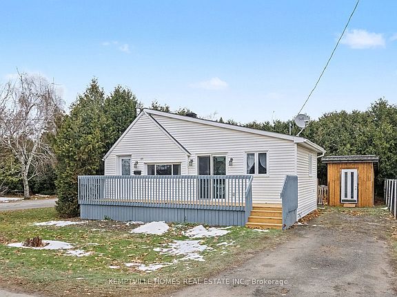 Charming + Affordable In-Town Living!Welcome to 415 Barnes Street, a delightful 2-bed, 1-bath detached home offering simple, efficient living in a central Kemptville location. Perfect as an investment, first home, downsizing option, or short-/long-term rental opportunity, this property delivers excellent versatility with coveted R2 zoning.Step inside to a warm and inviting living room with vaulted ceilings, exposed beams, and a cozy wood stove-your perfect winter retreat. Large windows bring in great natural light and create an airy, open feel. The bright eat-in kitchen offers plenty of cabinetry and functional workspace, leading to two comfortable bedrooms and a well-maintained bathroom.Outside, enjoy a spacious front deck ideal for morning coffee or evening unwinding. The manageable lot features a storage shed, fenced side yard, and driveway parking. Just minutes to shops, restaurants, schools, and parks-everything you need is right here.Whether you're looking for an investment property, a low-maintenance home base, or a peaceful retreat in town, this one checks all the boxes. Inclusions: fridge, stove, washer, dryer, wood stove, and hot water tank. This property is available for quick or immediate occupancy. Don't miss the Open House this Sunday from 2-4 PM!
