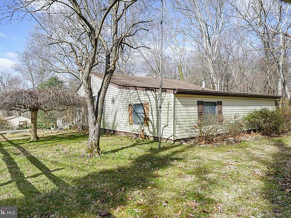 So much potential with this one!! This 2 bedroom 2 bath rancher sits on 3.69 acres and overlooks the Basin Run Creek. The home had been lovingly maintained by the lady who built the house and lived there since 1985. The home is a little dated and needs some TLC. There is carpet in every room of the house. The living room and primary bedroom carpet is in good shape. The primary bedroom has a walk-in closet and access to full bath with jetted tub. and updated sink/vanity. Bedroom 2 has sliders to wraparound deck with creek views. Hall bath has stand up shower. Living Room is a very nice size and comes with electric fireplace. Kitchen has plenty of counter space and a closet with a washer and dryer included. Whole House generator included! No Gvt loans unless it's a renovation loan. Cash or conventional financing.