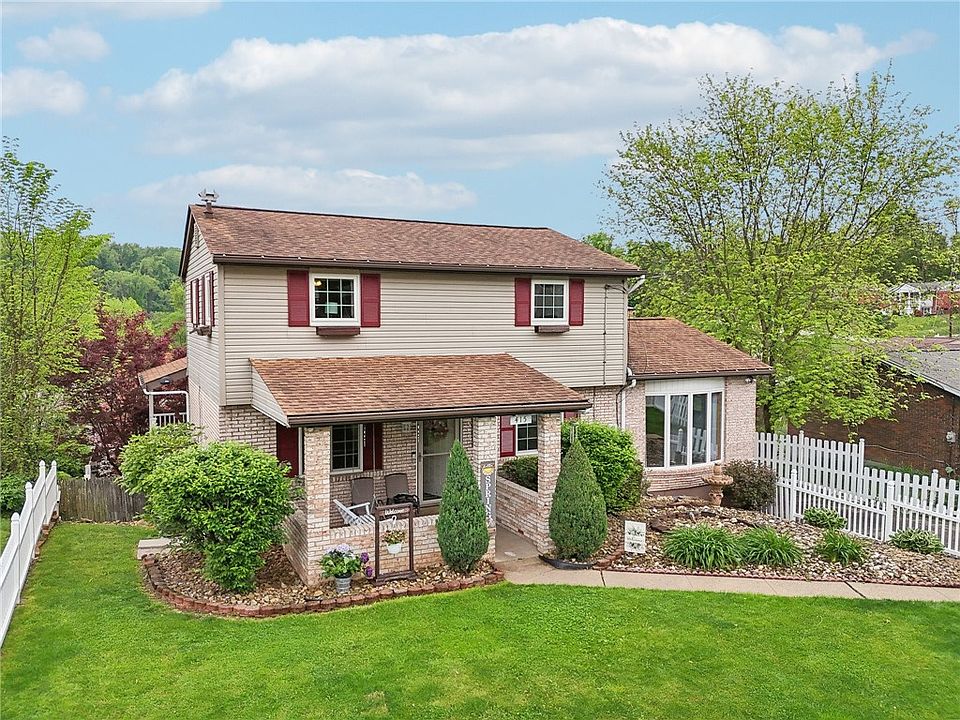 Located in the serene Stonybrook neighborhood of Elizabeth Township, this home offers everything today’s buyer desires, complete with classic white picket fence and close proximity to Round Hill Park, GAP trail, public golf course, neighborhood playground. Step inside to discover inviting, spacious and updated interior. However, the true highlight lies in the outdoor living space--Enjoy beautiful curb appeal & covered front porch~huge rear covered deck~fabulous backyard with a playground & playhouse. Delight in year-round relaxation in the hot tub tucked beneath deck & fire-pit patio just beyond. Main level--great kitchen with ss appliances, greenhouse window, granite counters--living room with cozy wood-burning fireplace & bay window filling the space w/natural light, dining room and front "flex" room. Venture downstairs--finished walkout game room w/gas stove & leading to hot tub area & backyard~ Additional amenities inc 2-car garage & school bus stop at the end of the street.