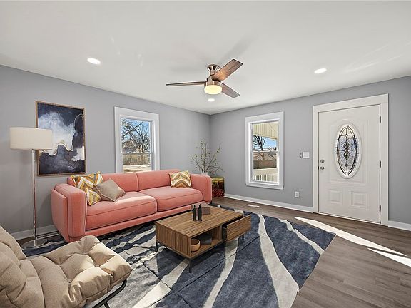 serve as an office or nursery. The wide back hallway can serve as a mudroom and offers two bedrooms and another updated tile bath. Rear entry is a breeze via the circular driveway. Super cool and ready for decorating! Make an appointment today!