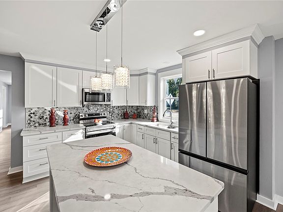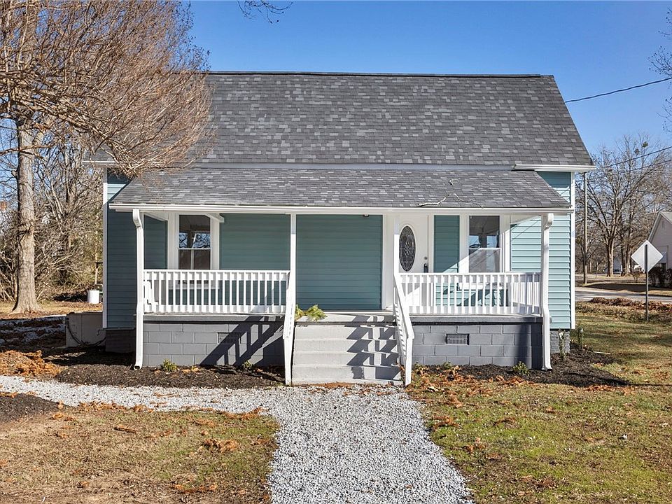 Charming home in the heart of Easley downtown district has been fully renovated and waiting for you. You will find beauty and convenience in this home with it's cozy covered front porch and circular driveway. Vinyl plank flooring, new windows, upscale lighting, tile bathrooms, smooth ceilings and new roof are just a few of the updates you will appreciate. Luxury kitchen offers custom cabinets, large island with seating option, new appliances and quartz countertops and specialty lighting make the kitchen a delight. The laundry area with a hot water heater is just around the corner. Master bedroom offers a walk-in closet and lovely bath with tile shower. There is a room off the dining room that could easily