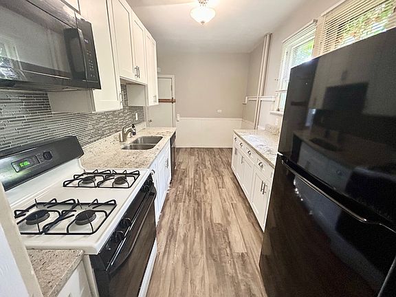 Updated and spacious 1st floor unit in a 2-unit building with historic charm! Home is on 1 level, featuring 3 bedrooms, eat-in kitchen, living room with built-in cabinets, dining room with hardwood floors, 9' ceilings and 1 car detached garage. Coin-op laundry in basement. Updates include white shaker kitchen cabinets with granite counters, updated appliances, most all windows replaced, updated bathroom and freshly painted. Conveniently located near Rt. 30 and the College of St. Francis! Owners are Illinois Licensed Realtors. Owner pays for water/trash - tenant is responsible for electric and gas (heat/cooking). 1-year lease minimum 1 pet allowed w/ non-refundable $200 security Owner maintains lawn and has a snow removal service for driveway area
