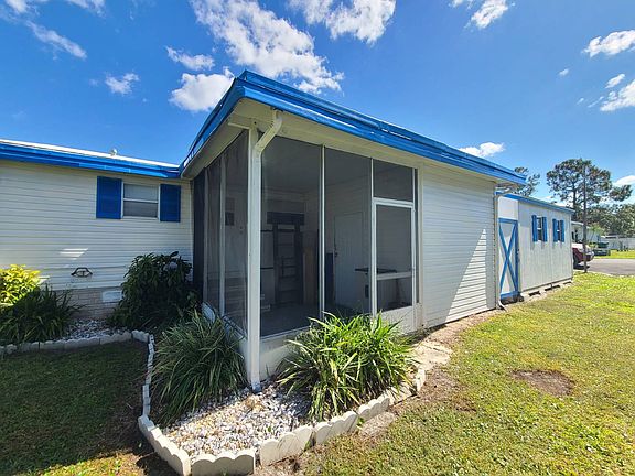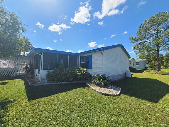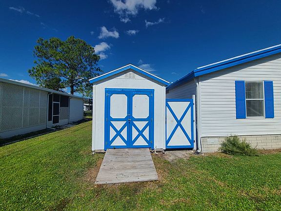 Well-maintained mobile home on leased land with practical updates and generous storage. New AC installed in 2023. Recent 4-point inspection available for review. This home features a double carport plus golf cart garage, two storage sheds, lovely front screened porch and rear screened patio for outdoor living, inside laundry and granite counters. There is also a propane stove. Located in Wildwood Acres, an Active 55+ community with clubhouse and shuffleboard courts, it's just minutes from Brownwood Paddock Square with its shopping, restaurants, live entertainment, and vibrant social scene. Enjoy easy access to grocery stores, medical facilities, golf courses, and all The Villages has to offer.