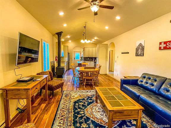 Located 1 block from Downtown Main Street in the heart of Buena Vista. Walk to Arkansas River, Town, Events, Bars, Coffee, and more! Home is very green, almost self sustaining with expansive solar panels. Built in 2014 and updated less than 6 months ago. New carpet, painting, landscaping, and more. Wood stove, granite slab throughout, custom cabinets, engineered wood flooring, stainless appliances, south facing deck, and an attached 2-car garage. Mount Princeton and midland peak views accompany this beautiful location. Location, Location, Location...