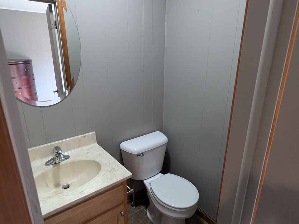 Lush bushes and treesFenced in backyardBack patioPrivate backyardLvp flooringTile shower