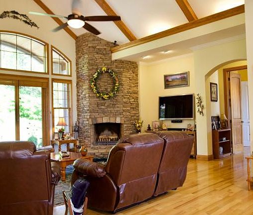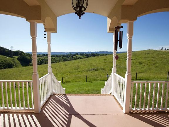 Beautiful "Gentleman's Farm" custom built brick home on 5.86 acres with miles and miles of panoramic mountain views! 3 bedrooms, 3.5 bathrooms on main level plus another full bath in basement. Solid Hickory wood flooring throughout the main level with tiled floors in kitchen & bathrooms. 10' ceilings throughout. Impressive great room with vaulted ceiling, Red Oak beams, stacked stone FP. Butler pantry with wet bar and built in wine cooler. Dining room with double glass doors from great room, arched doorways,and bay window. Kitchen includes a large island with cooktop with extraction hood,,custom Hickory cabinets, granite on all work surfaces, double convection ovens, built in microwave & walk-in pantry. Inviting sitting room/office with stacked stone FP. Double doors to large master. Master also includes an exterior door that leads to the wrap around porch. Master bath with 2 walk-in closets, corner jetted tub, granite double vanity, and luxurious shower with multiple shower heads. Split floor plan offers 2 other bedrooms with their own en suite baths. 3 additional bonus rooms upstairs with Red Oak floors. Septic is only for 3 BR but there are more rooms that could be used as BR's. Partially finished basement with media room (great Man Cave!), a 3rd stacked stone fireplace, built-ins, cupboard unit, 2nd multi purpose room, full bath, large workshop (unheated), and parking for 3rd or 4th vehicle. Main level has over-sized 2 car garage. Lovely custom patio to welcome your guests! Large Barn, fruit trees and huge workshop complete the package! Motivated! New price- $575,000.