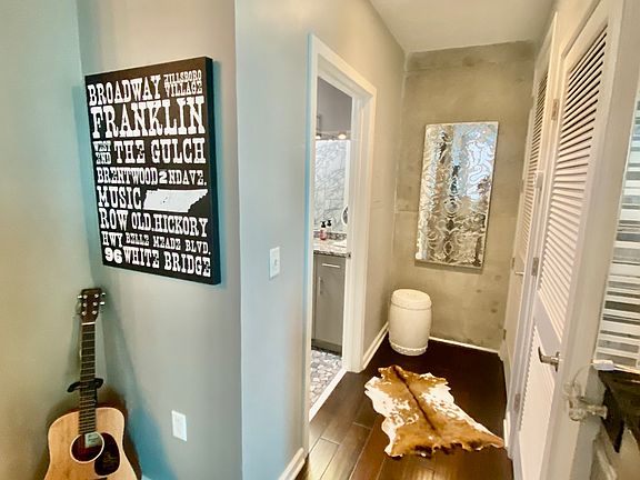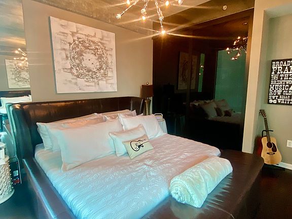 Come home to this beautiful, fully furnished executive luxury condo with all the modern amenities! Custom designed kitchen with open living. California Closet, Hard Wood Floors. Washer/Dryer, Samsung Stainless Appliances, Pool, Club Room, Gym, 24 Hour Concierge. Garage parking spot included! One of Nashville's best roof-top pool & terrace with arguably best views of the city!