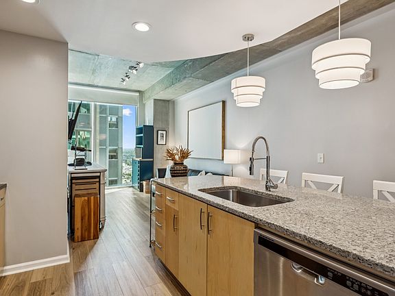 Experience downtown living at its best in this stunning 24th-floor, one-bedroom condo at Viridian Tower. Floor-to-ceiling windows showcase incredible skyline and river views, while the open layout features a kitchen with an island, stainless steel appliances, in-unit laundry, and an updated bathroom for effortless modern living. Enjoy resort-style amenities including a rooftop pool, fitness center, 24/7 concierge, and secure parking, plus the convenience of a grocery store in the building. You’re just steps away from Nashville’s best restaurants, music, and nightlife—this is the vibrant city lifestyle you’ve been waiting for.